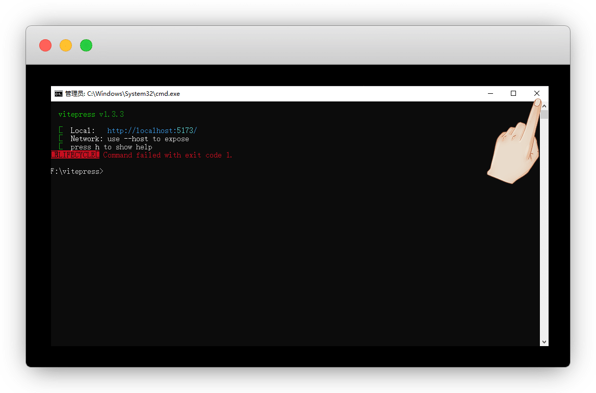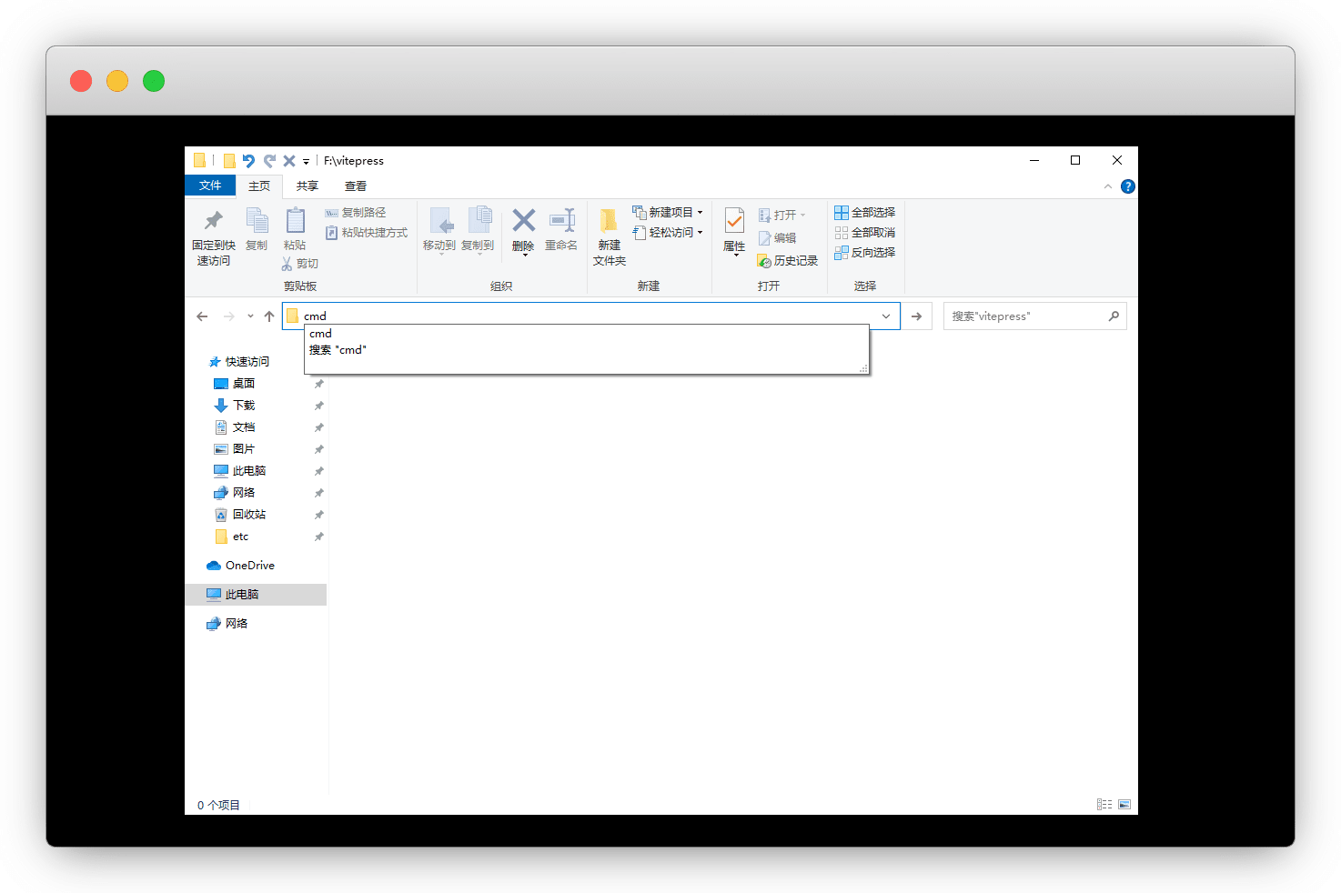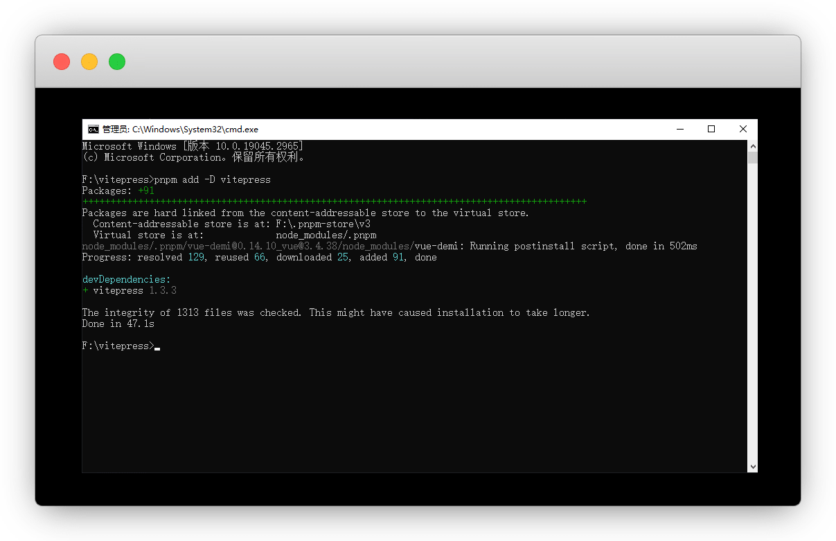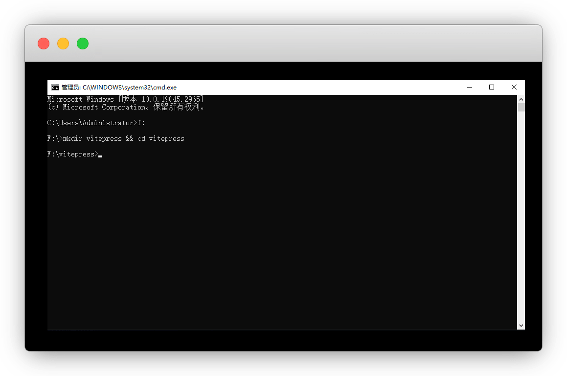 mkdir vitepress && cd vitepress这样我的目录路径为 F:\vitepress